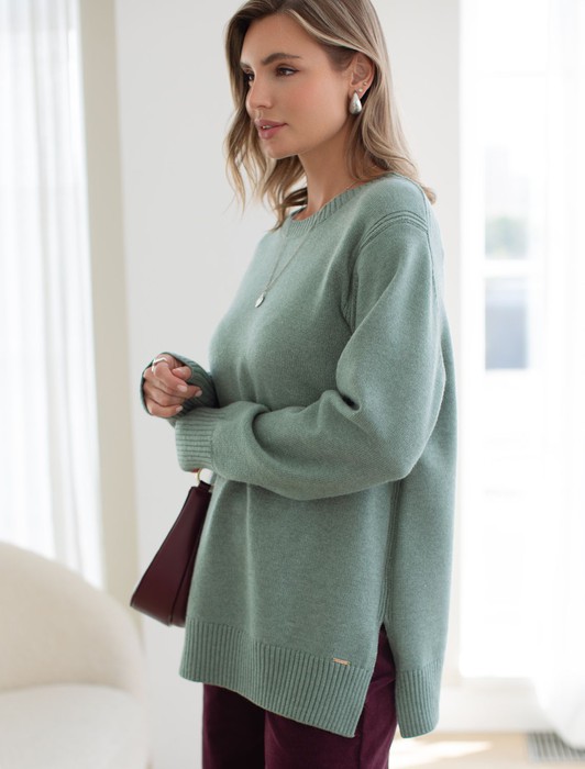Состав: 52%ПАН (акрил) 33%ПЭ 8%ПУ 7%Кашемир Плотность: 7 GG Размер товара на первом фото: 42Джемпер с круглым воротом выполнен из мягкой меланжевой пряжи с кашемиром. Лаконичная модель свободного силуэта дополнена боковыми разрезами. Мягкая пряжа очень приятная к телу, поддержит комфорт на протяжении всего дня. Сочетается в костюме с брюками D38.013, D38.012 и юбкой D36.016