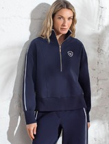 Джемпер женский, свободного кроя, изготовлен из трикотажного полотна. Горловина круглой формы. На полочке — вышивка. Спинка цельнокроенная. Рукава спущеные, с манжетам по низу. В боковых швах разрезы.