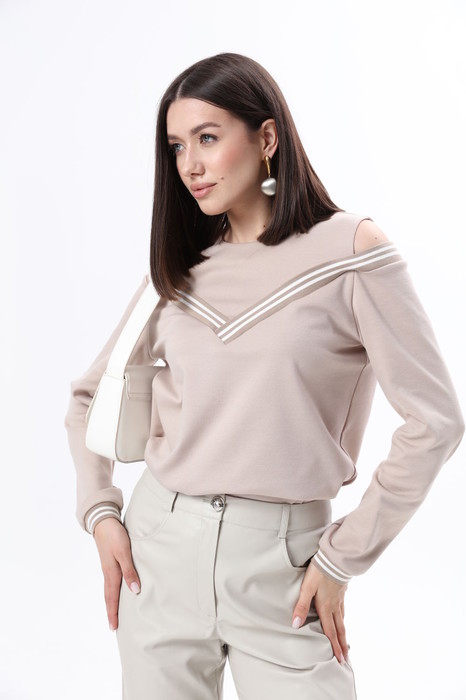 Джемпер свободного объёма, оригинального кроя, с имитацией топа и открытыми плечами. Горловина круглая, по спинке застежка на петлю и пуговицу Отделка горловины джемпера и манжеты выполнены из довязов в контрастном цвете. Рост фотомодели 175 см. Размер у фотомодели – 44.