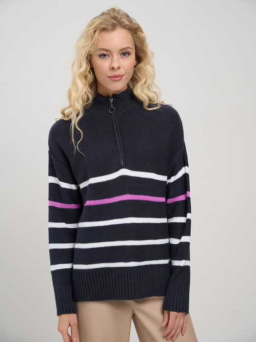 Джемпер NewVay 7242-40303 т.джинс/белый/гиацинт
