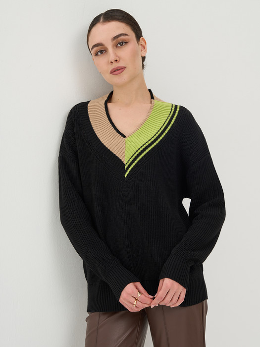 Джемпер NewVay 9242-94110 чёрный/латте/жасминовый чай
