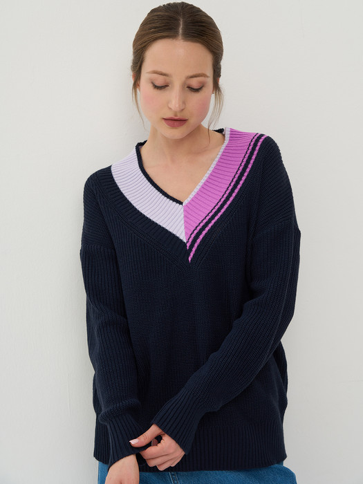 Джемпер NewVay 9242-94110 т.синий/пыльная лаванда/гиацинт