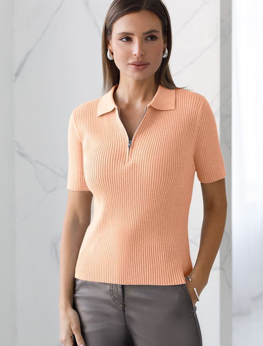 — АКЦИЯ 8 марта! Джемпер-поло с застежкой на молнии из хлопка с кашемиром
