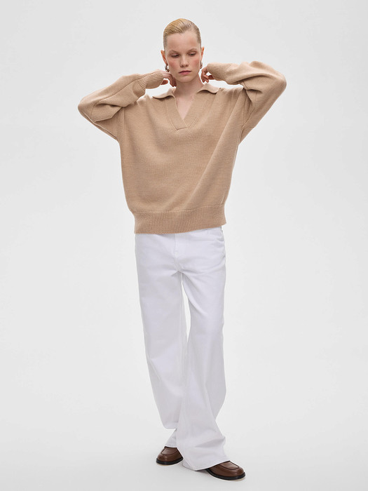 Совместные покупки Омск Женская одежда Джемперы, свитеры, водолазки — Джемпер-поло свободного кроя, бежевый