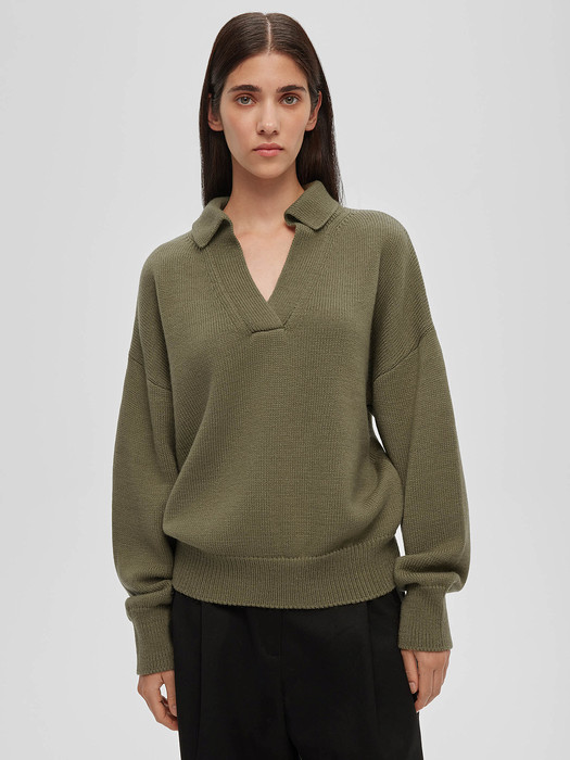 Джемпер-поло свободного кроя, светлый хаки