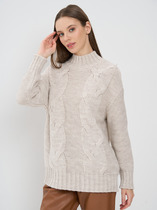 Джемпер женский из трикотажной ткани. По переду расположен принт. Рукав втачной, одношовный 3/4. Вырез горловины круглый, оформлен притачной бейкой.