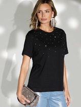Нарядная футболка с принтом стразами из премиального хлопка с эластаном