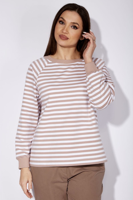 Джемпер женский, прямого силуэта с длинным рукавом. Рукав покроя реглан с отрезной манжетой по низу. Горловина круглой формы, с подрезной бейкой. Перед джемпера задекорирован небольшой вышивкой. Спинка без особенностей.