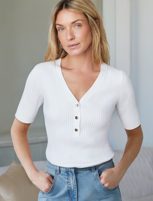 Состав: 83%Вис 17%ПА Плотность: 12 GG Параметры модели на первом фото: Рост 170, бюст 83, талия 64, бедра 88 Размер товара на первом фото: 42Джемпер тонкой вязки из вискозы с нейлоном. Модель с V- вырезом прилегающего силуэта дополнена золотистыми пуговицами. Мягкая очень приятная к коже пряжа хорошо держит форму и гарантирует комфорт во время носки в течение всего дня. Изделие дополнено фирменным металлическим логотипом бренда.