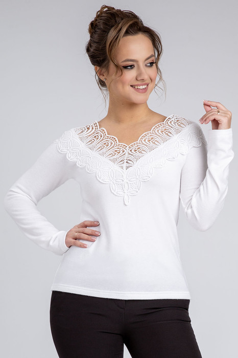Отделочным элементом является кружево настроченное по переду и спинке горловины.