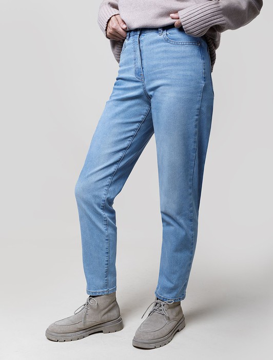 Джинсы мом фит из мягкой эластичной джинсы 12OZ