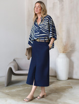 Модель прямая, длинная, внизу сзади небольшой разрез (картинку можно посмотреть на сайте производителя)