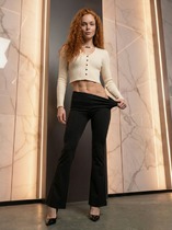 Легинсы женские облегающие без боковых швов из бархатного трикотажного полотна с тиснённым рисунком. Верх изделия обработан широким поясом с широкой резинкой внутри.