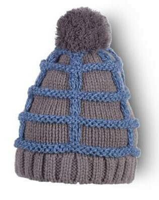 Шапка детская трикотажная, одинарная, со стянутым верхом и помпоном. переплетени - сочетание лицевой и изнаночной глади со сменой полос.