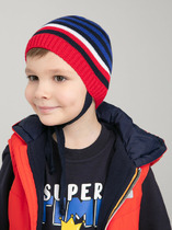 Шапка детская трикотажная двойная. шапка с завязками. в качестве отделки на шапке пришит декоративный элемент.