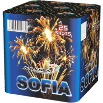 1. Красная сфера (пион) и облако треска (трещащий дождь). 2. Красная сфера (пион) и облако золотого треска (трещащая хризантема). 3. Красно-золотая мерцающая сфера (пион). 4. Красные звезды с пышными хвостами (кокос) и треск. 5. Множество серебряных ниспадающих нитей (парча) и красные звезды. 6. Красные звезды с пышными хвостами (кокос) и облако треска (трещащая хризантема).