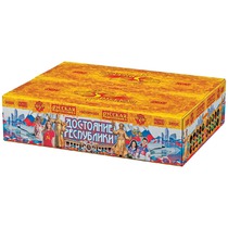 1. Зеленая сфера (пион), красный мерцающий разрыв переходит в белые хлопья (слива). 2. Красная сфера (пион) и облако треска (трещащий дождь). 3. Лимонная сфера (пион), красный мерцающий разрыв переходит в белые хлопья (слива). 4. Красно-зеленые звезды с пышными хвостами (кокос) и треск. 5. Множество золотых ниспадающих нитей (парча) и синие огни. 6. Лимонно-фиолетовая сфера (пион) и облако треска (трещащий дождь).