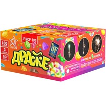 1. Красно-зелено-синяя сфера (пион) и облако треска (трещащий дождь). 2. Множество золотых ниспадающих нитей (золотая парча) и белое мерцание. 3. Красные звезды с пышными хвостами (кокос) и облако треска (трещащий дождь). 4. Множество серебряных ниспадающих нитей (парча) и зеленое мерцание. 5. Фиолетовые звезды с пышными хвостами (кокос) и облако золотого треска (трещащий дождь). 6. Множество серебряных ниспадающих нитей (парча) и облако треска (трещащий дождь).