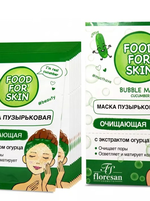 Совместные покупки Омск Косметика и парфюмерия Маски для лица — FLORESAN Food for skin Пузырьковая маска очищающая с экстрактом Огурца 15мл*10