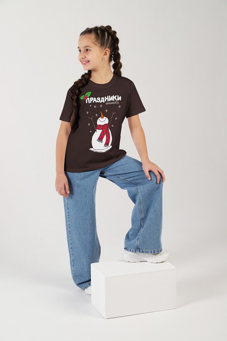 Совместные покупки Омск Детская одежда Футболки, майки — Фуфайка (футболка) для девочки Карнавал-1 ФД-019 ШОКОЛАДНЫЙ