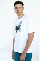 Футболка мужская из гладкокрашеного трикотажного полотна "кулирка" с лайкрой, классическогоь покроя, с коротким втачными рукавами, горловиной овальной формы, обработанной втачной планкой и принтом на полочке, выполненным в технике шелкографии.