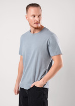 Мужская футболка из кулирки. Прямой силуэт, короткие рукава, рукава и горловина отделаны тканью другого цвета, на горловине декоративные пуговицы. Четыре варианта расцветки — индиго, антрацитовая, бордовая и серый меланж. Размеры от 54 до 62. Есть розница.