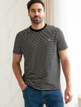 Мужская футболка из кулирки. Угловой вырез, прямой силуэт, короткие рукава, принт в виде небольшой надписи, горловина и рукава с цветными вставками. Шесть расцветок — белая, голубая, красная, темно-синяя, черная и серый меланж. Размеры от 46 до 54. Возможен розничный заказ.