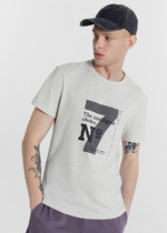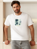 Мужская футболка из кулирки. Короткие рукава, круглая горловина, украшена печатью, прямой силуэт.