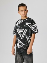 Футболка из меланжевого трикотажа, декорированная зеркальным принтом в виде зебры с бахромой по бокам. Свободный крой, круглый вырез горловины, декоративный вырез на спинке снизу.На ребенке представлен размер 140:- Ширина изделия по линии груди 39,5 см- Ширина по низу изделия 42 см- Длина изделия 55,5 смРазница между размерами составляет 1,5 см.