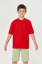 Футболка из меланжевого трикотажа, декорированная зеркальным принтом в виде зебры с бахромой по бокам. Свободный крой, круглый вырез горловины, декоративный вырез на спинке снизу.На ребенке представлен размер 110:- Ширина изделия по линии груди 33 см- Ширина по низу изделия 35 см- Длина изделия 47,5 смРазница между размерами составляет 1,5 см.