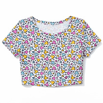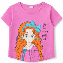 Трикотажная футболка, декорированная ярким принтом с деталями из блесток. Прямой крой, круглый вырез горловины, короткие рукава с отворотами.На ребенке представлен размер 110:- Ширина изделия по линии груди 30 см- Ширина по низу изделия 31 см- Длина изделия 39 смРазница между размерами составляет 1,5 см.