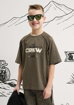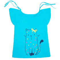 Трикотажная футболка, декорированная ярким принтом с деталями из блесток. Прямой крой, круглый вырез горловины, короткие рукава с отворотами.На ребенке представлен размер 110:- Ширина изделия по линии груди 30 см- Ширина по низу изделия 31 см- Длина изделия 39 смРазница между размерами составляет 1,5 см.