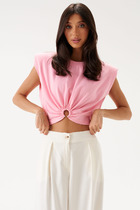 Футболка прямого свободного кроя, выполнена из хлопкового полотна розового цвета. Характеристики: прямой свободный крой, горловина овальная, рукав слегка спущен, горловина и край рукава выполнены из довяза, по передней части изделия слева декоративная объемная печать "Annete". Длина по центру спинки 69 см, длина рукава 18 см.
