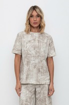Vilatte Футболка из эластичного футера с авторским принтом D49.095 св.оливковый_