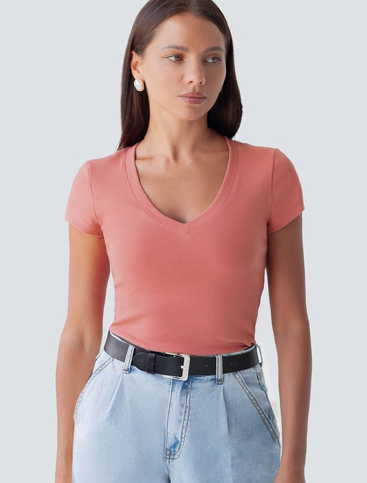 Состав: 95%Хлопок 5%ПУ Плотность: 210 Г/м2Облегающая футболка с V-образным вырезом террактового цвета создаст утонченный образ. Идеальная базовая модель для вашего гардероба! Глубокий V-образный вырез подчеркивает линию шеи и зрительно удлиняет силуэт. Футболка выполнена из хлопка с добавлением эластана, которая мягко облегает контуры тела, подчеркивая достоинства фигуры. Универсальный вариант для создания стильных повседневных образов.