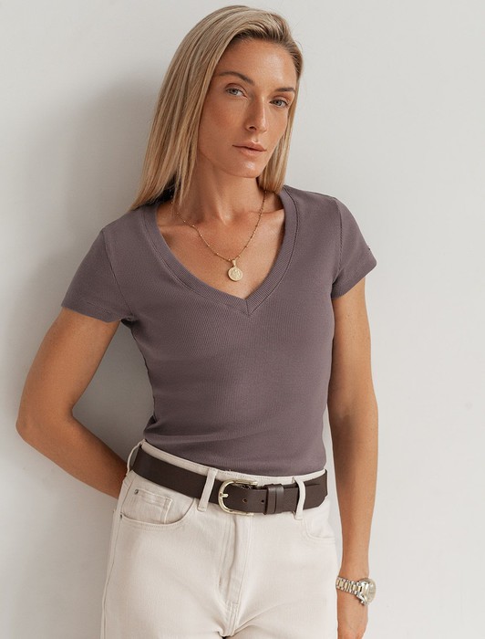 Футболка из плотного трикотажа в рубчик с V-образным вырезом