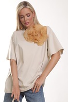 Vilatte Нарядная футболка с принтом фольгой из премиального хлопка с эластаном D