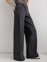 Широкие джинсы с декоративной стиркой из эластичного плотного денима