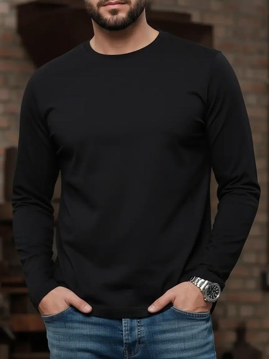 Мужская футболка F5, Regular fit (полуприлегающий силуэт), круглый вырез горловины, длинный рукав. Выполнена из классического трикотажного полотна.