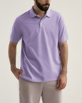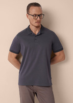 Футболка-поло из однотонного хлопкового полотна с добавлением лайкры. Втачной короткий рукав на манжете, воротник на отрезной стойке с застежкой на три пуговицы.