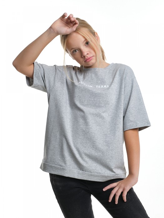 Совместные покупки Омск Детская одежда Футболки, майки — Mini Maxi Футболка с принтом (152-164см) 22-7613-2(4) светло-серый меланж
