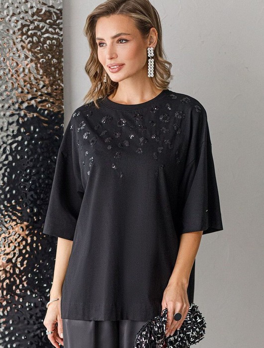 Футболка Vilatte D49.125 черный_пайетки