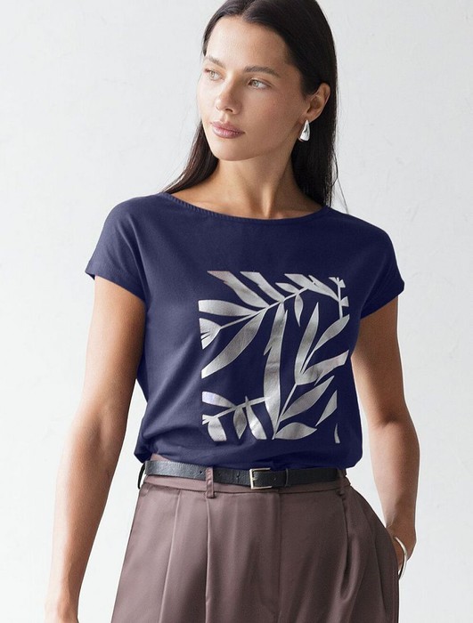 Совместные покупки Омск Женская одежда Футболки — Футболка Vilatte D49.134 т.синий_листики
