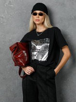 Свободный крой футболки дарит удобство и не стесняет движений, что делает ее идеальной для повседневной носки или активного отдыха, подчеркивает современный взгляд на моду. На рукаве металлический логотип бренда. Подойдет девушкам и женщинам на любую фигуру, вы будете чувствовать себя в ней уверенно и комфортно. Отлично впишется в гардероб благодаря универсальному дизайну, который легко сочетать с джинсами, шортами или спортивными брюками