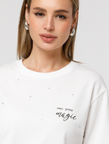 Vilatte Футболка из премиального хлопка с авторским принтом фольгой D49.978 бел