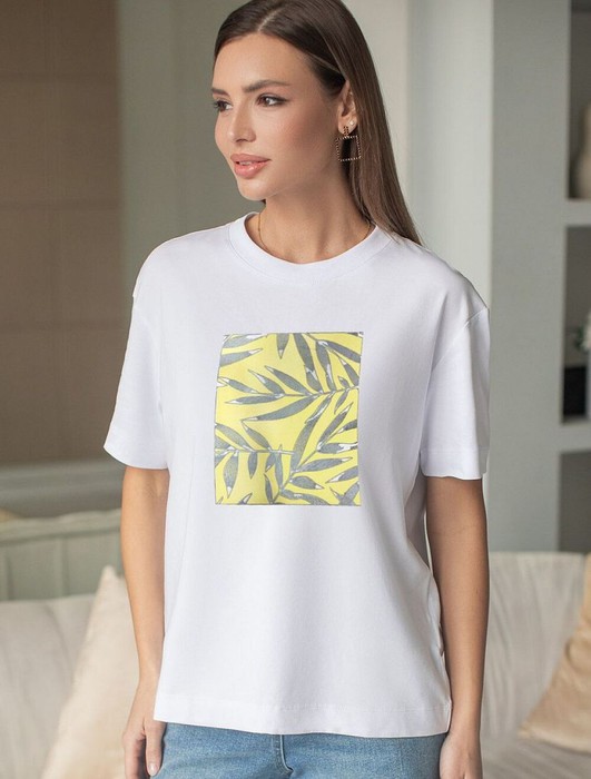 Совместные покупки Омск Женская одежда Футболки — Футболка Vilatte D49.158 белый_листья