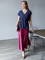 Юбка миди с разрезом из струящегося плотного сатина