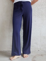 Прямые брюки с поясом на резинке из фактурного трикотажа в рубчик