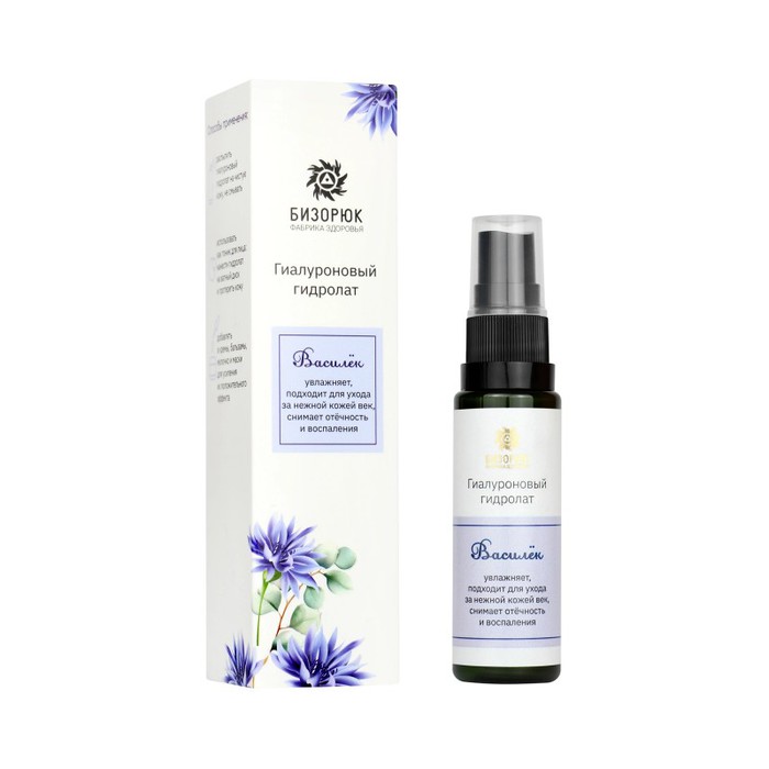 Гидролат «Бизорюк» «Василёк» – прекрасное средство для бережного ухода за чувствительной кожей лица. Активные компоненты, входящие в состав, ценятся за свои способности успокаивать эпидермис, выравнивая его тон, питая и увлажняя на глубоком уровне. Считается, что гидролат при нанесении на область вокруг глаз снимает отёчности, а также разглаживает мелкие морщинки. Василёк также может помочь при обработке кожи после депиляции, успокаивая воспаления.
