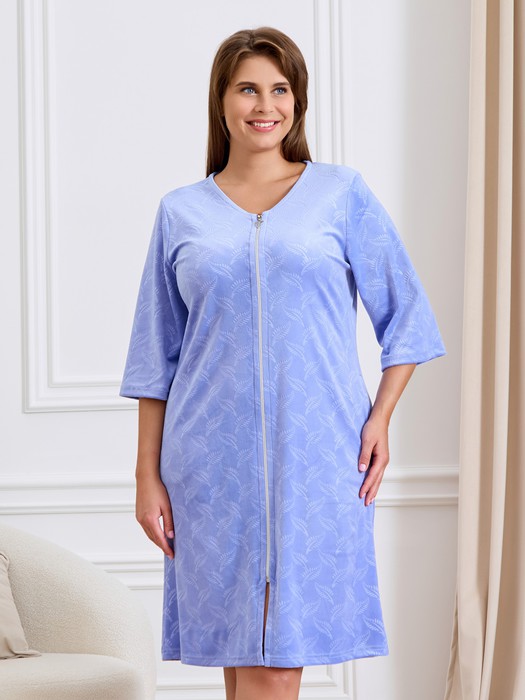 Совместные покупки Омск Женская одежда Пижамы, халаты — 08.12 _ Халат Бархат Х-747 ПЫЛЬНО-ГОЛУБОЙ